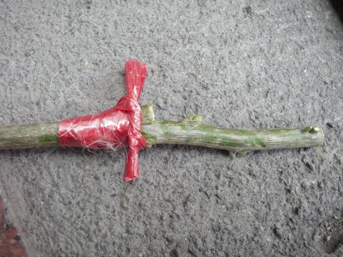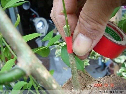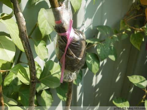 5、纏繞膠帶固定接穗,套上塑膠袋綁住袋口保濕。