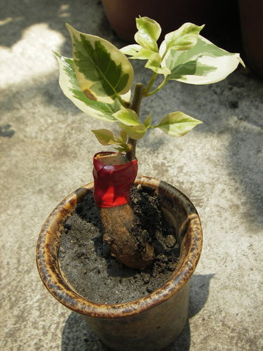 6、也可將芽株嫁接在手臂粗的莖幹上。