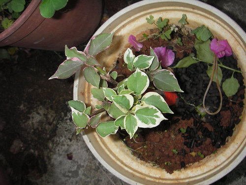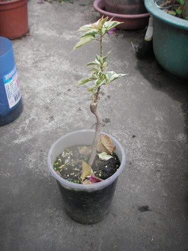 九重葛在插枝時把刺修光,若想一棵多色就必須把你要的顏色芽接上去套袋然後種植。