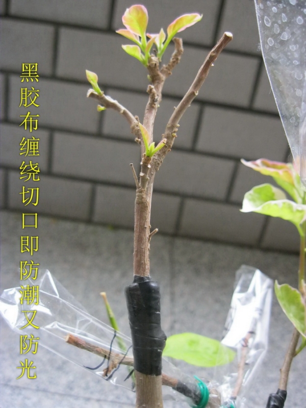 套袋法:【嫰枝嫁接—-细枝嫁接】