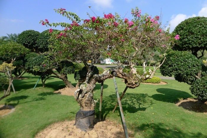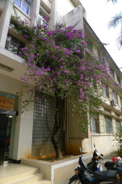 带着花友们的祝福与支持.寻三旅程在10月17日踏上了深圳开往昆明的火车.火车在路上晚点九个小时.结果花了38个小时到达昆明.之后搭乘昆明至西双版纳(景洪)班车.前后一共花了50个小时到达了寻三目的地西双版纳(景洪市).在景洪探寻三角梅共三天.第一天去了热带花卉园.第二天与第三天都是骑单车把景洪-机场-周边区域转了个遍.在G214国道周边探寻不少于三十个花木场结果很少花木场种植三角梅.有种植的也都是安格斯.稍为丰富一点也都是嫁接的普通品种.而且基本没有什么品种是原生苗%90都是嫁接苗.最后探寻到景洪绿化园林的苗圃.苗圃非常大.许多品种已开花中.比热带花卉园要开的好.在西双版纳的品种的确的漂亮虽然已经普及.但三角梅效果在那是如此的美丽同时收获也不少
