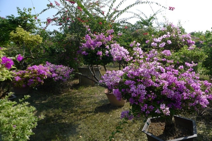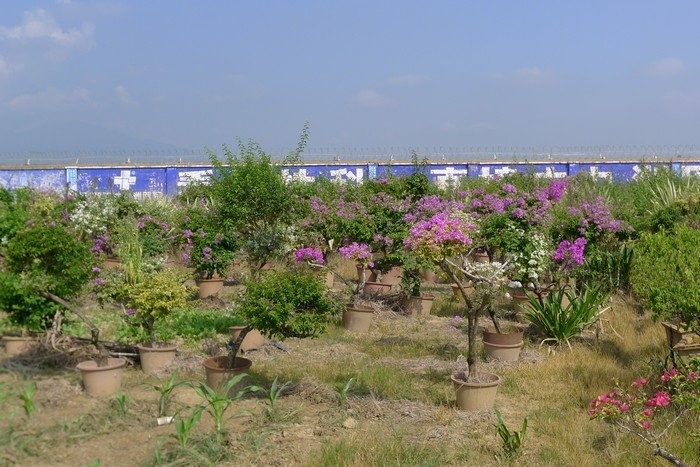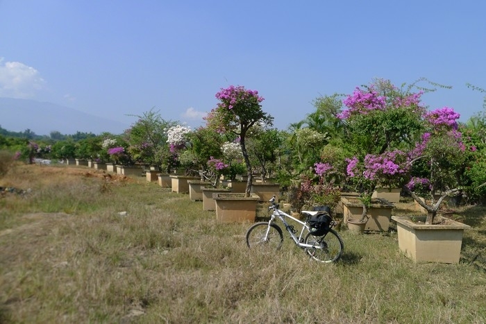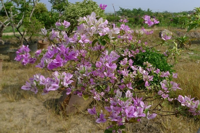 在景洪当地租了辆自行为.为什么选自行车.一个是方便.二个小地方能穿行.能把角落也转遍.其实在没来之前就计划着来到当地要租车自行车以便探寻.经过了两天的寻找最后在G214国道上的一条小路发现了景洪绿化园林苗圃基地.苗圃基地种植三角梅非常之多.我觉得可能与花老去过的那个不是同一个或是搬离.至此.我在景洪市区内见到的三角梅大部份是从这个苗圃培育.原来景洪市机场的三角梅也是从这搬出展示.大型的树三桩加大码的水泥盆.嫁接多色三角梅非常漂亮.由于并不是花期最旺时所以还见不到一片花海.但开的比热带花卉园要多也更要漂亮